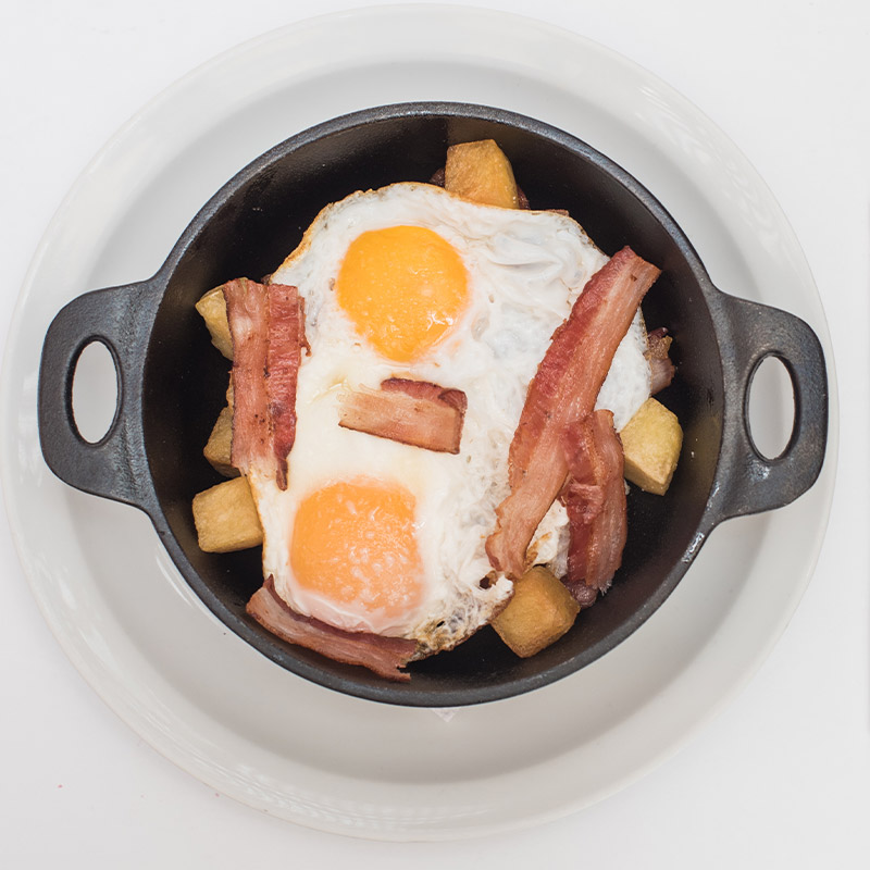 Con cebolla, tomate, pimentón, queso Sabana bañado con salsa ranchera y un toque de crema de leche. Acompañado de papas salteadas.