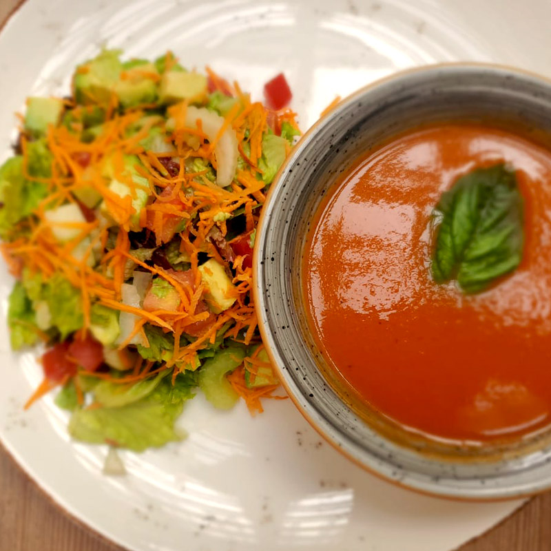 Sopa de Tomate con 1/2 Ensalada Mixta o 1/2 Ensalada Çaesar